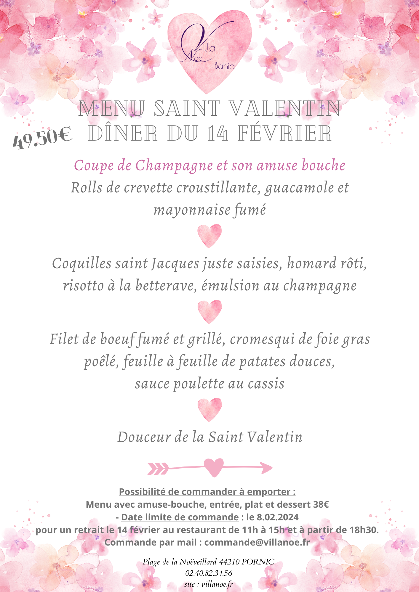 - Catégories d’Évènement: Saint-Valentin, Menu spécial fête